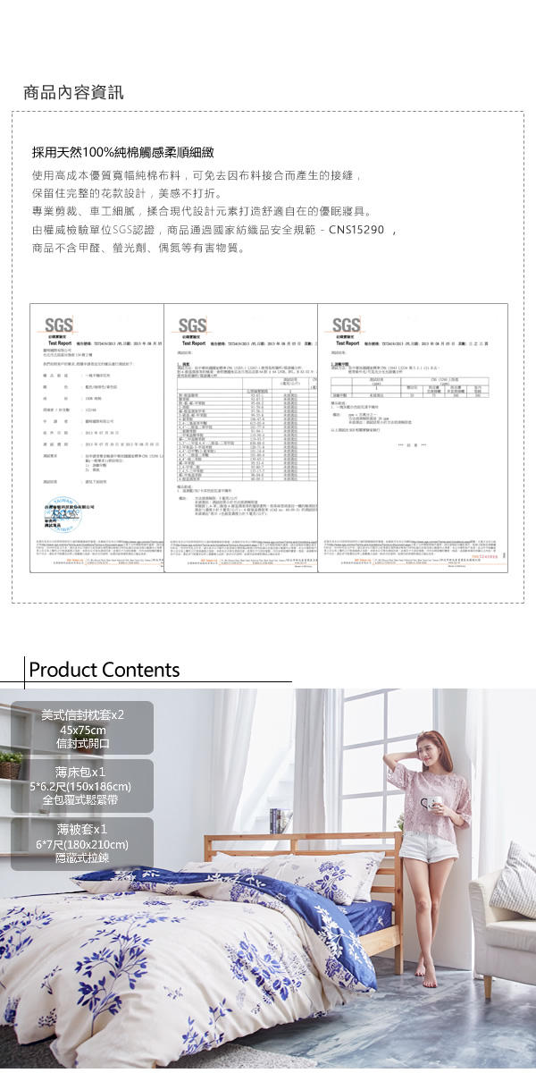 - 內容件數:床包x1+被套x1+美式信封枕套x2