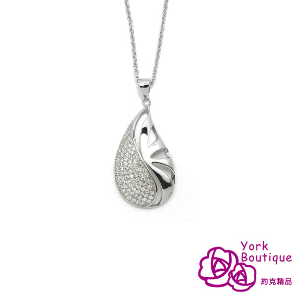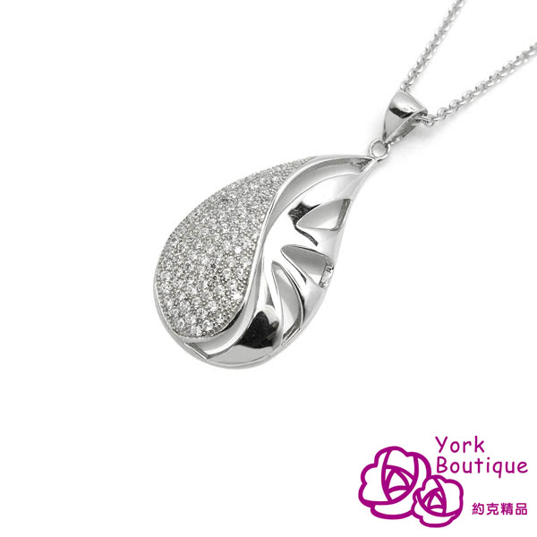 【約克精品】鑽之滴方晶鋯石包銠金項鍊